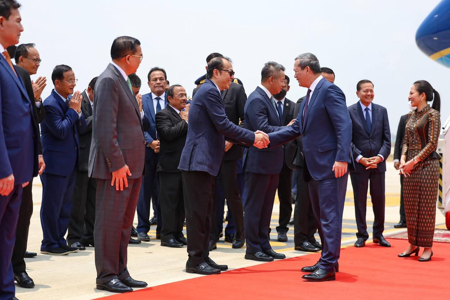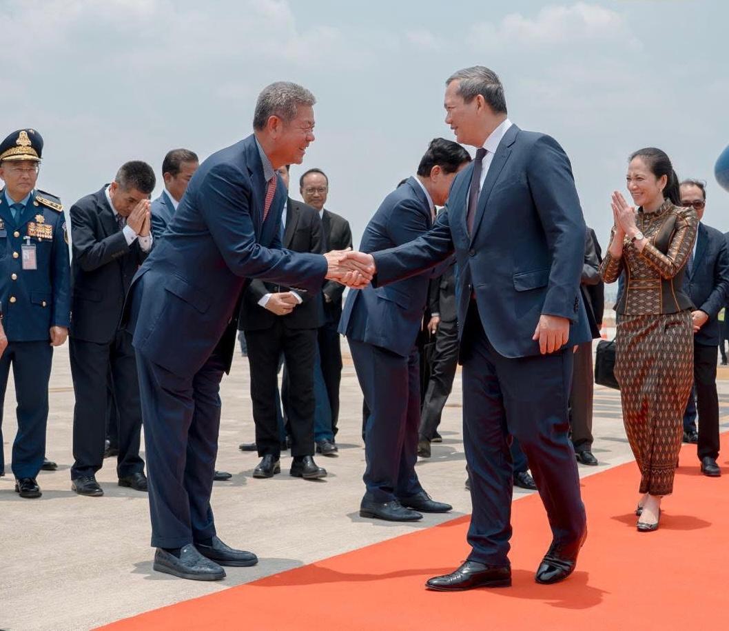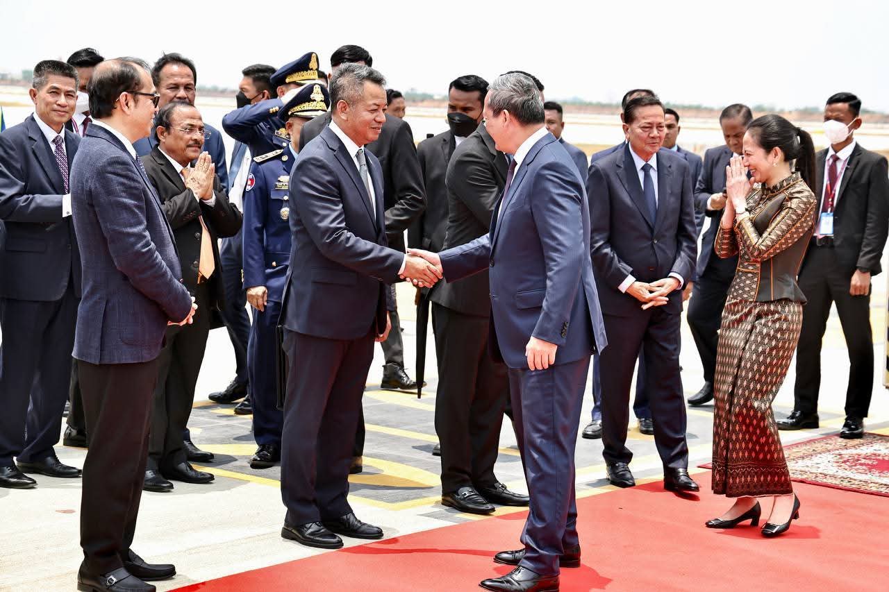 ឯកឧត្តម គួច ចំរើន អភិបាលខេត្តកណ្ដាល អញ្ជើញចូលរួមទទួលដំណើរសម្តេចមហាបវរធិបតី ហ៊ុន ម៉ាណែត និងលោកជំទាវបណ្ឌិត ពេជ ចន្ទមុន្នី ហ៊ុន ម៉ាណែត អញ្ជើញដឹកនាំគណៈប្រតិភូជាន់ខ្ពស់នៃរាជរដ្ឋាភិបាលកម្ពុជា ធ្វើមាតុភូមិនិវត្តន៍=====================នាព្រឹកថ្ងៃព្រហស្បតិ៍ ៧រោច ខែចេត្រ ឆ្នាំម្សាញ់ សប្ដស័ក ព.ស២៥៦៩ ត្រូវនឹងថ្ងៃទី៩ ខែមេសា ឆ្នាំ២០២៦ ឯកឧត្តម គួច ចំរើន អភិបាលនៃគណៈអភិបាលខេត្តកណ្ដាលបានអញ្ជើញចូលរួមទទួលដំណើរសម្តេចមហាបវរធិបតី ហ៊ុន ម៉ាណែត នាយករដ្ឋមន្ត្រី នៃព្រះរាជាណាចក្រកម្ពុជា និងលោកជំទាវបណ្ឌិត ពេជ ចន្ទមុន្នី ហ៊ុន ម៉ាណែត អញ្ជើញដឹកនាំគណៈប្រតិភូជាន់ខ្ពស់នៃរាជរដ្ឋាភិបាលកម្ពុជា ធ្វើមាតុភូមិនិវត្តន៍បន្ទាប់ពីចូលរួមកិច្ចប្រជុំកំពូលស្តីពីសុខភាពតែមួយ (One Health Summit) នៅទីក្រុងលីយ៉ុង និងទស្សនកិច្ចការងារ នៅទីក្រុងប៉ារីស នៃសាធារណរដ្ឋបារាំង ចាប់ពីថ្ងៃទី៦-៩ ខែមេសា ឆ្នាំ២០២៦៕