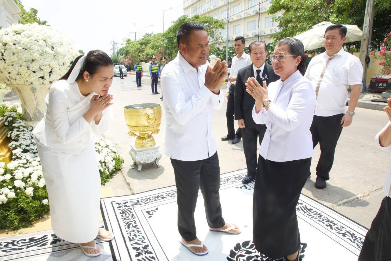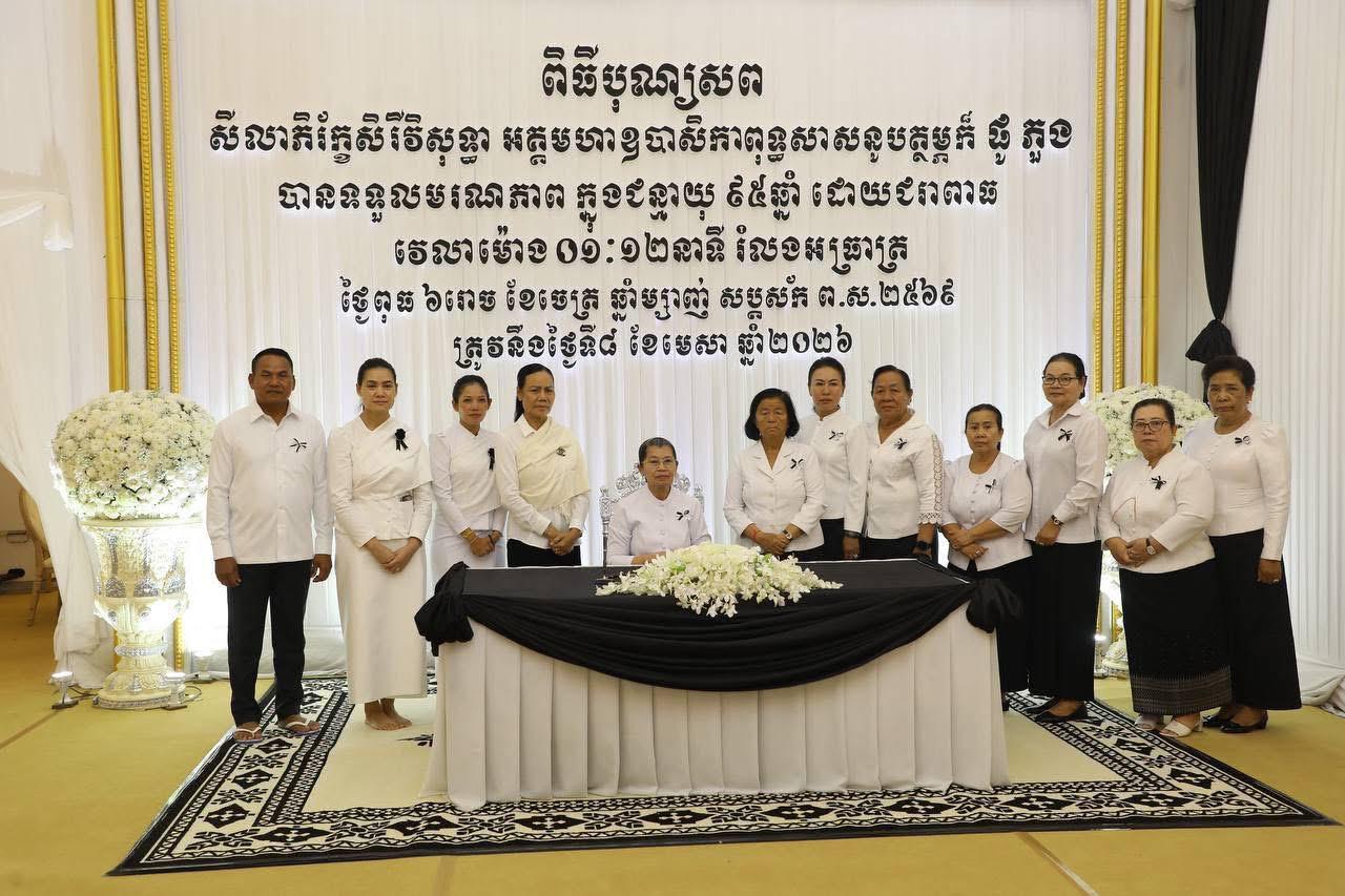 សម្តេច ម៉ែន សំអន អញ្ជើញគោរពវិញ្ញាណក្ខន្ធអគ្គមហាឧបាសិកាពុទ្ធសាសនូបត្ថម្ភក៍ ផូ ភួង==============សម្តេចកិត្តិសង្គហបណ្ឌិត ម៉ែន សំអន ឧត្តមប្រឹក្សាផ្ទាល់ព្រះមហាក្សត្រ បានដឹកនាំប្រតិភូ អញ្ជើញចូលរួមគោរពវិញ្ញាណក្ខន្ធ អគ្គមហាឧបាសិកាពុទ្ធសាសនូបត្ថម្ភក៍ ផូ ភួង នារសៀលថ្ងៃព្រហស្បតិ៍ ៧រោច ខែចេត្រ ឆ្នាំម្សាញ់ សប្តស័ក ព.ស.២៥៦៩ ត្រូវនឹង ថ្ងៃទី៩ ខែមេសា ឆ្នាំ២០២៦។អគ្គមហាឧបាសិកាពុទ្ធសាសនូបត្ថម្ភក៍ ផូ ភួង ត្រូវជាម្តាយបង្កើតរបស់ ឯកឧត្តមនាយឧត្តមសេនីយ៍ ស ថេត អគ្គស្នងការនគរបាលជាតិ បានទទលមរណភាពកាលពីថ្ងៃពុធ ៦រោច ខែចេត្រ ឆ្នាំម្សាញ់ សប្តស័ក ព.ស.២៥៦៩ ត្រូវនឹងថ្ងៃទី៨ ខែមេសា ឆ្នាំ២០២៦ វេលាម៉ោង០១:១២នាទី រំលងអាធ្រាត្រ ក្នុងជន្មាយុ៩៥ឆ្នាំ ដោយជរាពាធ។នៅក្នុងសមានទុក្ខដ៏ក្រៀមក្រំនោះ សម្តេចកិត្តិសង្គហបណ្ឌិត ក៏បានចូលរួមរំលែកមរណទុក្ខជាមួយ ឯកឧត្តម នាយឧត្តមសេនីយ៍ ស ថេត និងលោកជំទាវ និងបានឧទ្ទិសបួងសួងដល់គុណបុណ្យព្រះរតនត្រ័យ វត្ថុស័ក្តិសិទ្ធិទាំងឡាយក្នុងលោក សូមឱ្យដួងវិញ្ញាណក្ខន្ធរបស់ អគ្គមហាឧបាសិកាពុទ្ធសាសនូបត្ថម្ភក៍ ផូ ភួង បានទៅកាន់សុគតិភពកុំបីឃ្លៀងឃ្លាតឡើយ៕
