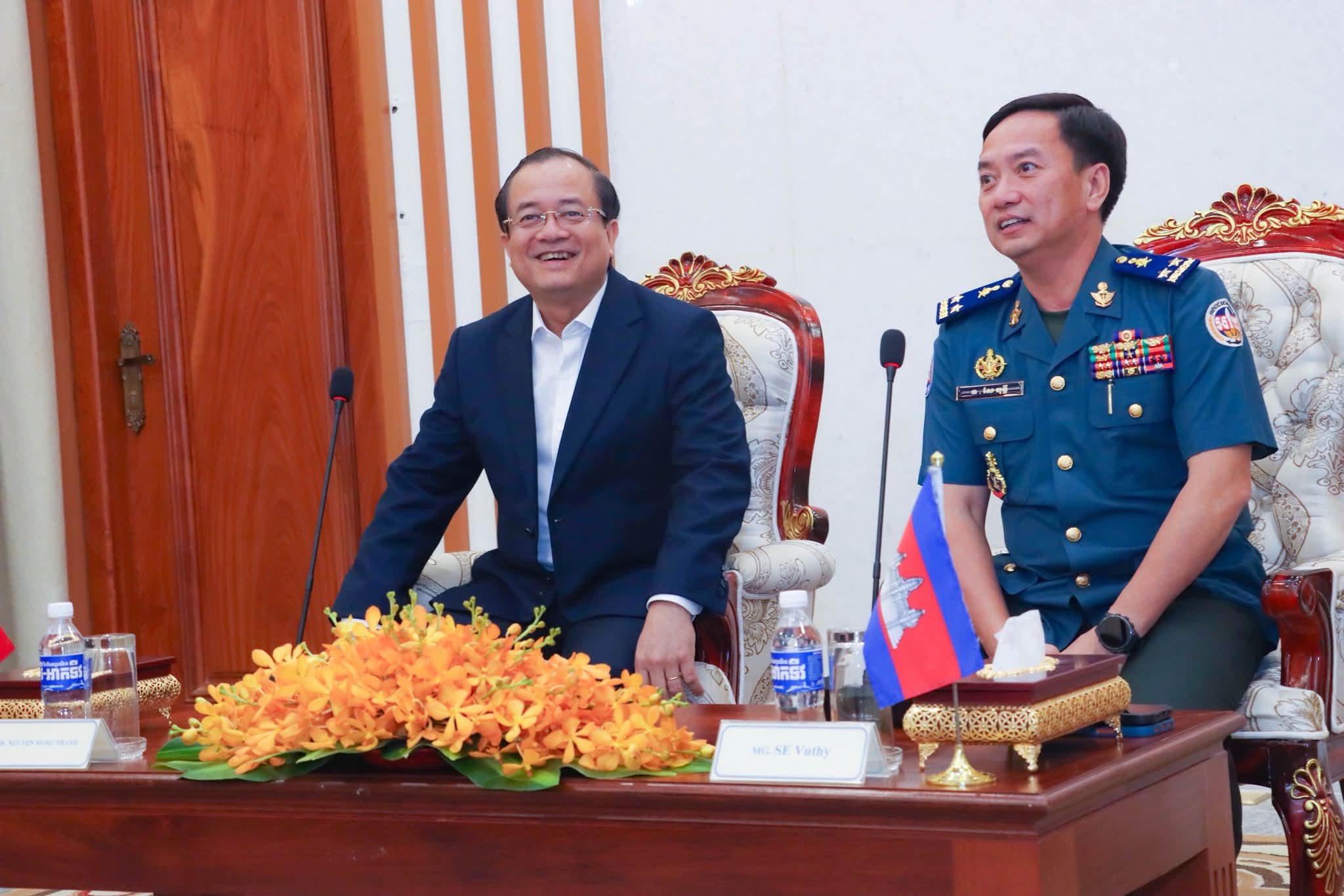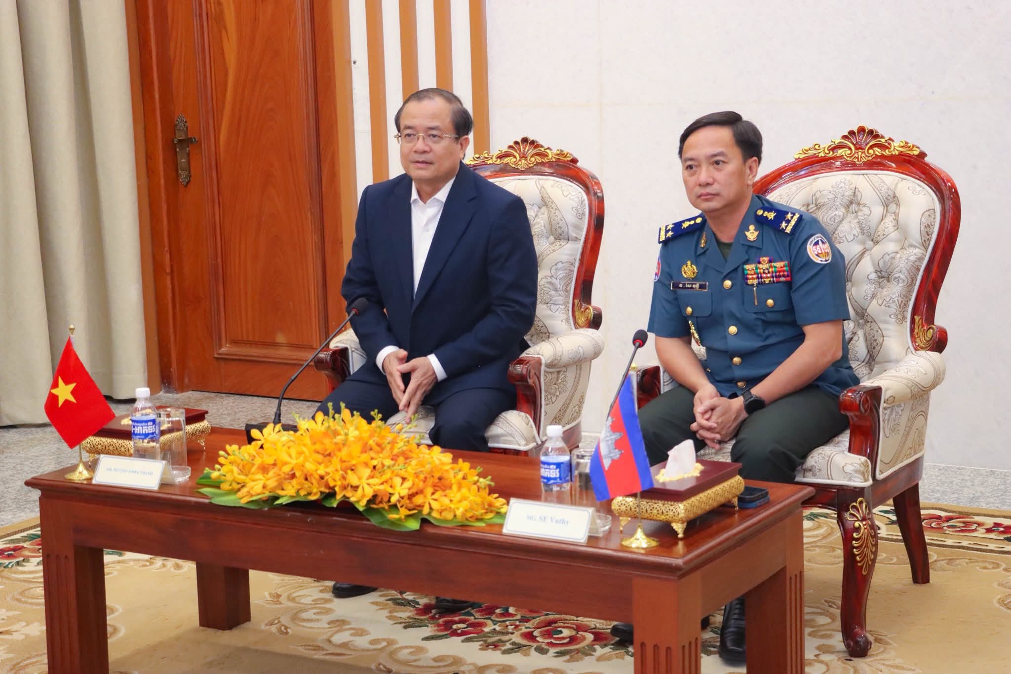 លោកឧត្តមសេនីយ៍ទោ សែ វុទ្ធី បានទទួលជួបអនុប្រធានគណកម្មធិការប្រជាជនខេត្តតៃនិញ នៃសាធារណរដ្ឋសង្គមនិយមវៀតណាម អញ្ជើញចូលជួបសម្តែងការគួរសម ពិភាក្សរការងារ និងជូនពរឆ្នាំថ្មី ប្រពៃណីជាតិខ្មែរ ==============ភ្នំពេញ៖ នៅបញ្ជាការដ្ឋានកងរាជអាវុធហត្ថលើផ្ទៃប្រទេស នារសៀលថ្ងៃពុធ ទី៨ ខែមេសា ឆ្នាំ២០២៦ លោកឧត្តមសេនីយ៍ទោ សែ វុទ្ធី មេបញ្ជាការរងកងរាជអាវុធហត្ថលើផ្ទៃប្រទេស តំណាង ឯកឧត្តម នាយឧត្តមសេនីយ៍ សៅ សុខា អគ្គមេបញ្ជាការរង នៃកងយោធពលខេមរភូមិន្ទ មេបញ្ជាការ កងរាជអាវុធហត្ថលើផ្ទៃប្រទេស បានទទួលជួប ឯកឧត្តម ង្វៀង ហុង ថាញ់ អនុប្រធានគណកម្មធិការប្រជាជនខេត្តតៃនិញ នៃសាធារណរដ្ឋសង្គមនិយមវៀតណាម អញ្ជើញចូលជួបសម្តែងការគួរសម ពិភាក្សរការងារ និងជូនពរឆ្នាំថ្មីប្រពៃណីជាតិខ្មែរដែលនឹងមកដល់នាពេលខាងមុខនេះ ពិសេសដើម្បីរឹតចំណងសាមគ្គីភាព សហប្រតិបត្តិការឱ្យកាន់តែរឹងមាំថែមទៀត។