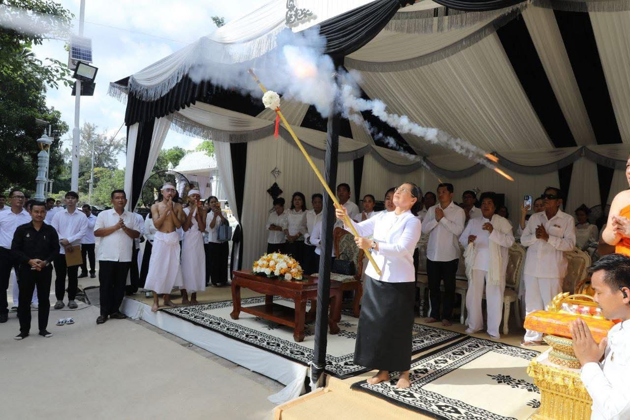 សម្តេចកិត្តិសង្គហបណ្ឌិត ម៉ែន សំអន ឧត្តមប្រឹក្សាផ្ទាល់ព្រះមហាក្សត្រ និងជាប្រធានក្រុមប្រឹក្សាជាតិរណសិរ្សសាមគ្គី អភិវឌ្ឍន៍មាតុភូមិកម្ពុជា អញ្ជើញចូលរួមបុណ្យសព លោកស្រី ខៀវ រ៉ាវី នៅក្នុងខណ្ឌដូនពេញ