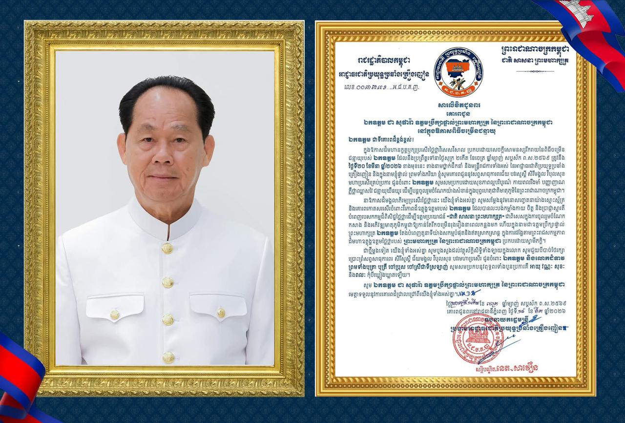 ឯកឧត្តមសន្តិបណ្ឌិត នេត សាវឿន ឧបនាយករដ្ឋមន្ត្រី ប្រធានអាជ្ញាធរជាតិប្រយុទ្ធប្រឆាំងគ្រឿងញៀន ផ្ញើសារលិខិតជូនពរ គោរពជូន ឯកឧត្តម ជា សុផារ៉ា ឧត្តមប្រឹក្សាផ្ទាល់ព្រះមហាក្សត្រ នៅក្នុងឱកាសពិធីចម្រើនជន្មាយុ អានបន្ត
