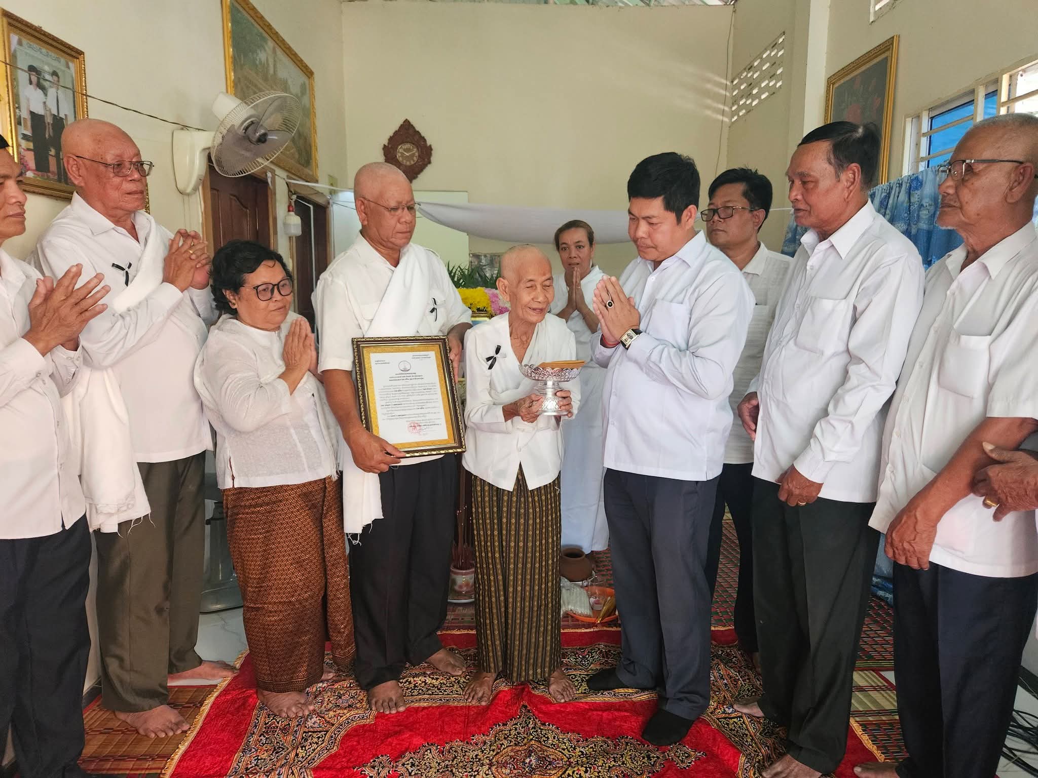 គណៈប្រតិភូរដ្ឋបាលខេត្តកណ្តាល អញ្ជើញគោរពវិញ្ញាណក្ខន្ធសព សីលាភិរ័ក្ខសិរីវិសុទ្ធា អគ្គមហាឧបាសិកាពុទ្ធសាសនូបត្ថម្ភក៍ ផូ ភួង ត្រូវជាម្តាយបង្កើតរបស់ ឯកឧត្តម នាយឧត្តមសេនីយ៍ ស ថេត