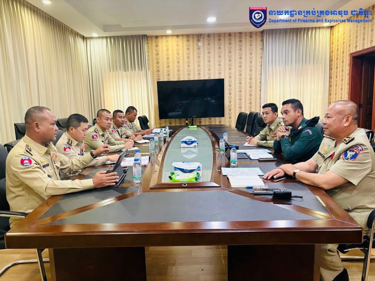លោកឧត្តមសេនីយ៍ទោ សែម គន្ធា ប្រធាននាយកដ្ឋានគ្រប់គ្រងអាវុធ ជាតិផ្ទុះ អញ្ចើញជាអធិបតីដឹកនាំកិច្ចប្រជុំ ក្រុមការងារប្រឹក្សាវិន័យ នៃនាយកដ្ឋានគ្រប់គ្រងអាវុធ ជាតិផ្ទុះ នៅសាលប្រជុំនាយកដ្ឋានគ្រប់គ្រងអាវុធ ជាតិផ្ទុះ អានបន្ត