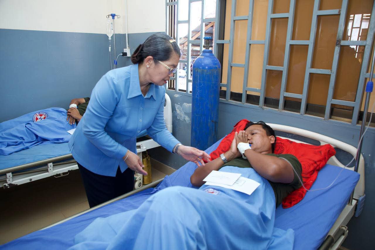 សម្តេចកិត្តិសង្គហបណ្ឌិត ម៉ែន សំអន អញ្ជើញសួរសុខទុក្ខវីរកងទ័ព និងប្រជាពលរដ្ឋកំពុងសម្រាកព្យាបាលជំងឺនៅមន្ទីរពេទ្យបង្អែកជាំក្សាន្ត អានបន្ត
