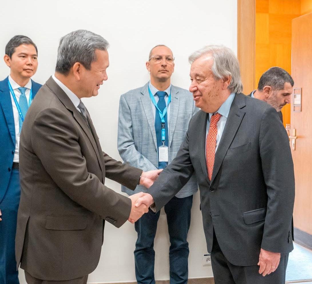 សម្ដេចមហាបវរធិបតី ហ៊ុន ម៉ាណែត នាយករដ្នមន្ត្រី នៃព្រះរាជាណាចក្រកម្ពុជា អញ្ចើញជួបជាមួយ ឯកឧត្តម António Guterres អគ្គលេខាធិការអង្គការសហប្រជាជាតិ ក្នុងជំនួបសម្តែងការគួរសម និងពិភាក្សាការងារ នៅប្រទេសស្វីស អានបន្ត