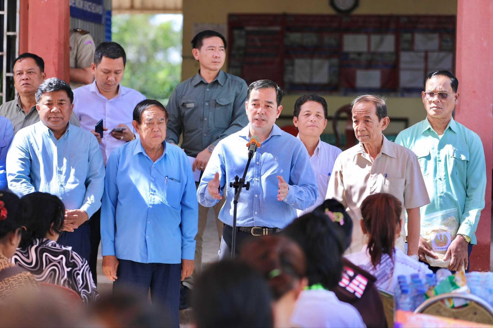 ឯកឧត្តមសន្តិបណ្ឌិត នេត សាវឿន ឧបនាយករដ្ឋមន្រ្តី អញ្ជើញអមដំណើរសម្តេចមហាបវរធិបតី ហ៊ុន ម៉ាណែត អញ្ជើញជាអធិបតីភាពដ៏ខ្ពង់ខ្ពស់ ក្នុងពិធីជួបសំណេះសំណាល សួរសុខទុក្ខ និងចែកអំណោយ ជូនប្រជាពលរដ្ឋភៀសសឹក ស្ថិតនៅស្រុកអូរជ្រៅ ខេត្តបន្ទាយមានជ័យ