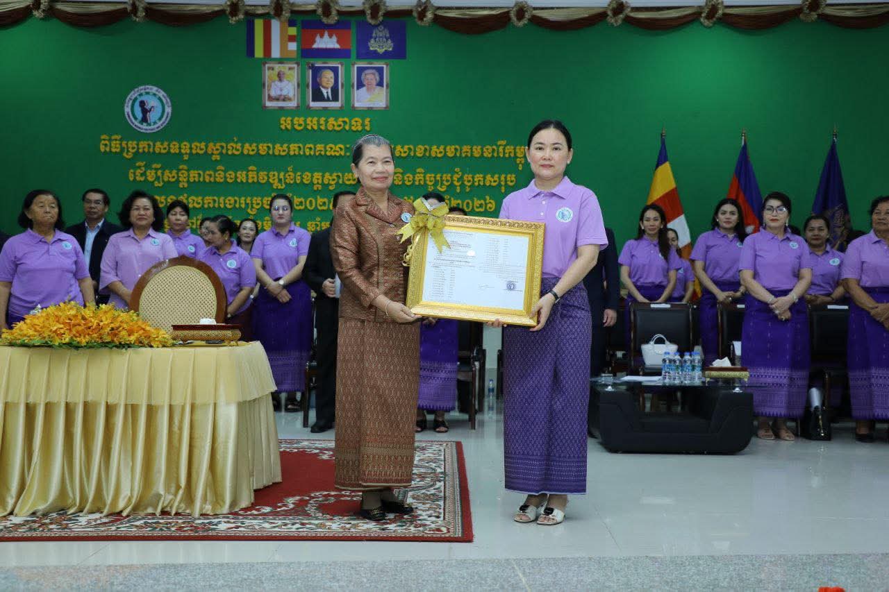 សម្តេចកិត្តិសង្គហបណ្ឌិត ម៉ែន សំអន អញ្ជើញប្រកាសទទួលស្គាល់ លោកជំទាវ អាយ កុសុមា ជាប្រធានកិត្តិយសគណៈកម្មការសាខា សមាគមនារីកម្ពុជាដើម្បីសន្តិភាព និងអភិវឌ្ឍន៍ ខេត្តស្វាយរៀង អានបន្ត