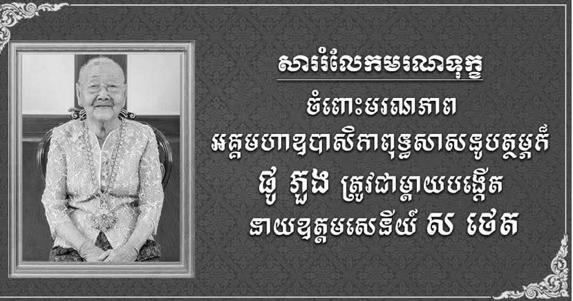 ឯកឧត្តមបណ្ឌិត ម៉ក់ ជីតូ រដ្នលេខាធិការក្រសួងមហាផ្ទៃ ផ្ញើសាររំលែកទុក្ខជូនឯកឧត្តម នាយឧត្តមសេយ៍ ស ថេត ចំពោះមរណភាពអគ្គមហាឧបាសិកាពុទ្ធសាសនូបត្ថម្ភក៍ ផូ ភួង ដែលត្រូវជាម្តាយបង្កើត អានបន្ត