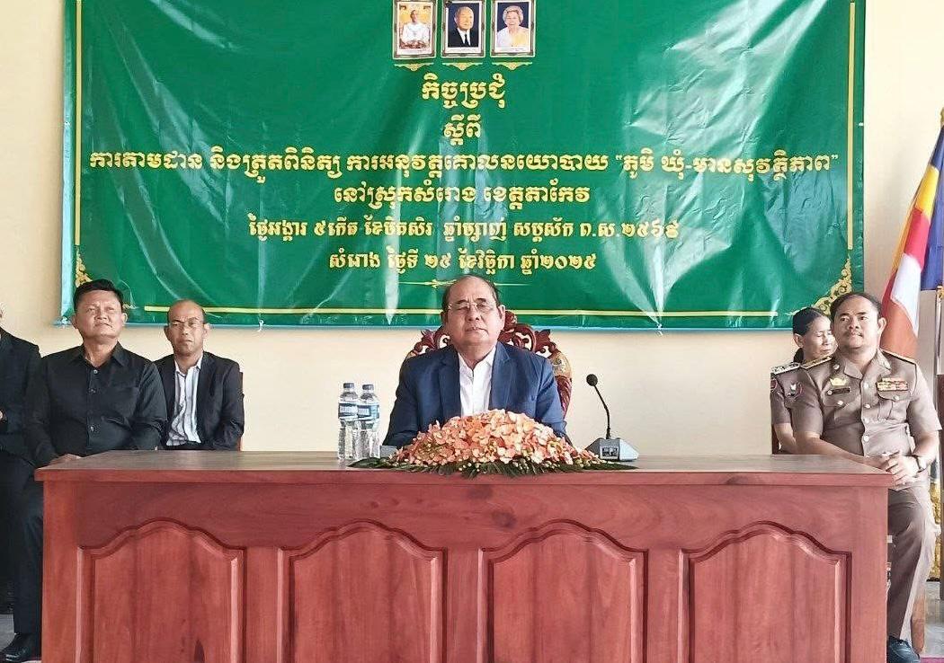 ឯកឧត្តមបណ្ឌិត ម៉ក់ ជីតូ រដ្ឋលេខាធិការក្រសួងមហាផ្ទៃ អញ្ជើញជាអធិបតីដឹកនាំកិច្ចប្រជុំតាមដាន និងត្រួតពិនិត្យ ការអនុវត្តគោលនយោបាយ ភូមិ ឃុំ សង្កាត់ មានសុវត្ថិភាព តាមបណ្តាស្រុក ក្នុងក្របខណ្ឌក្រសួងមហាផ្ទៃ នៅសាលាស្រុកសំរោង ខេត្តតាកែវ អានបន្ត