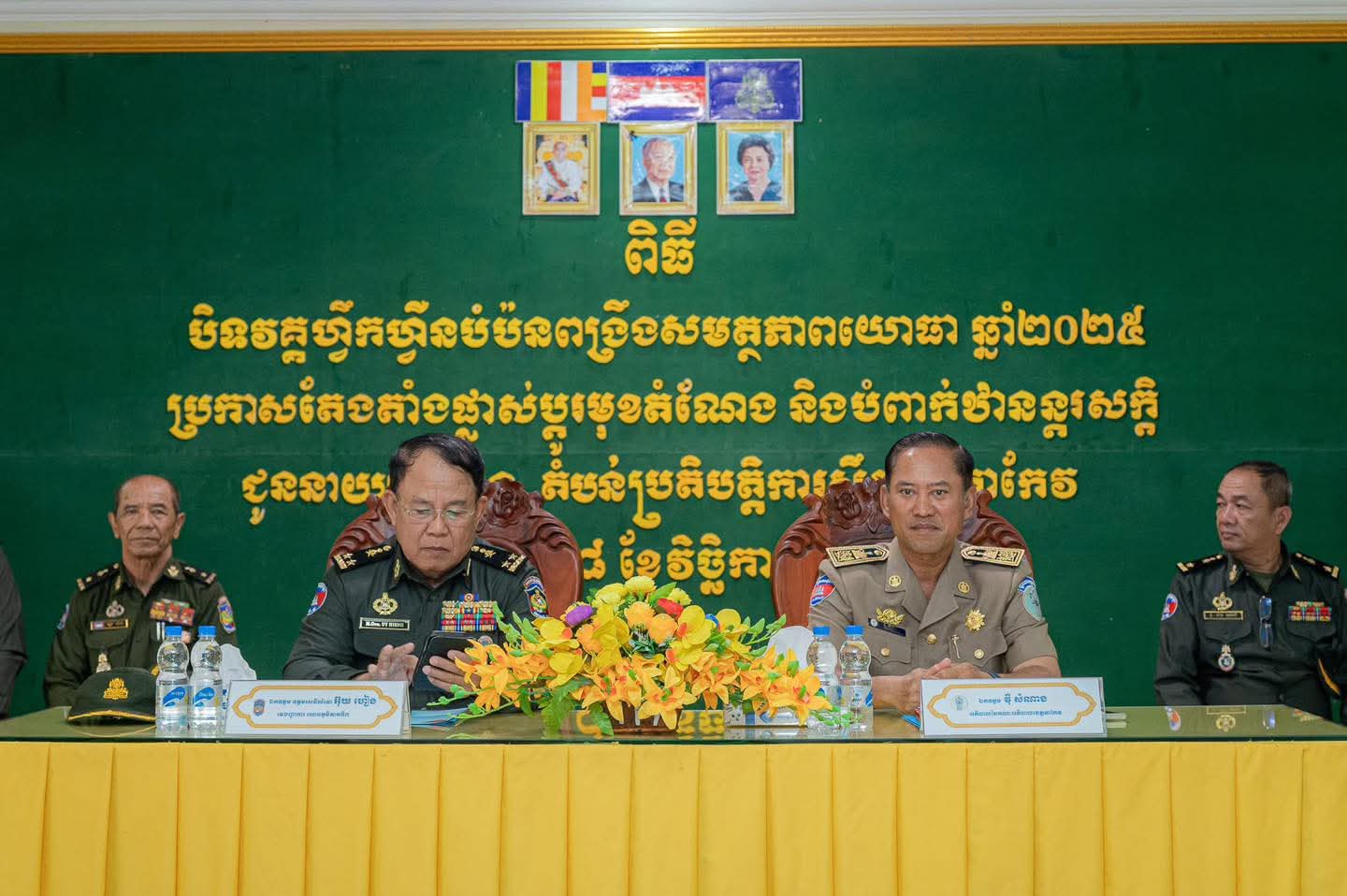 ឯកឧត្តម វ៉ី សំណាង និងឯកឧត្តម ឧត្តមសេនីយ៍ទោ អ៊ុយ ហៀង អញ្ជើញជាអធិបតីភាព ក្នុងពិធីបិទវគ្គហ្វឹកហ្វឺន បំប៉នពង្រឹងសមត្ថភាពយោធា ឆ្នាំ២០២៥ ប្រកាសតែងតាំង ផ្លាស់ប្ដូរមុខតំណែង និងបំពាក់ឋានន្តរសក្ដិ ជូននាយទាហាន តំបន់ប្រតិបត្តិការសឹករងតាកែវ អានបន្ត