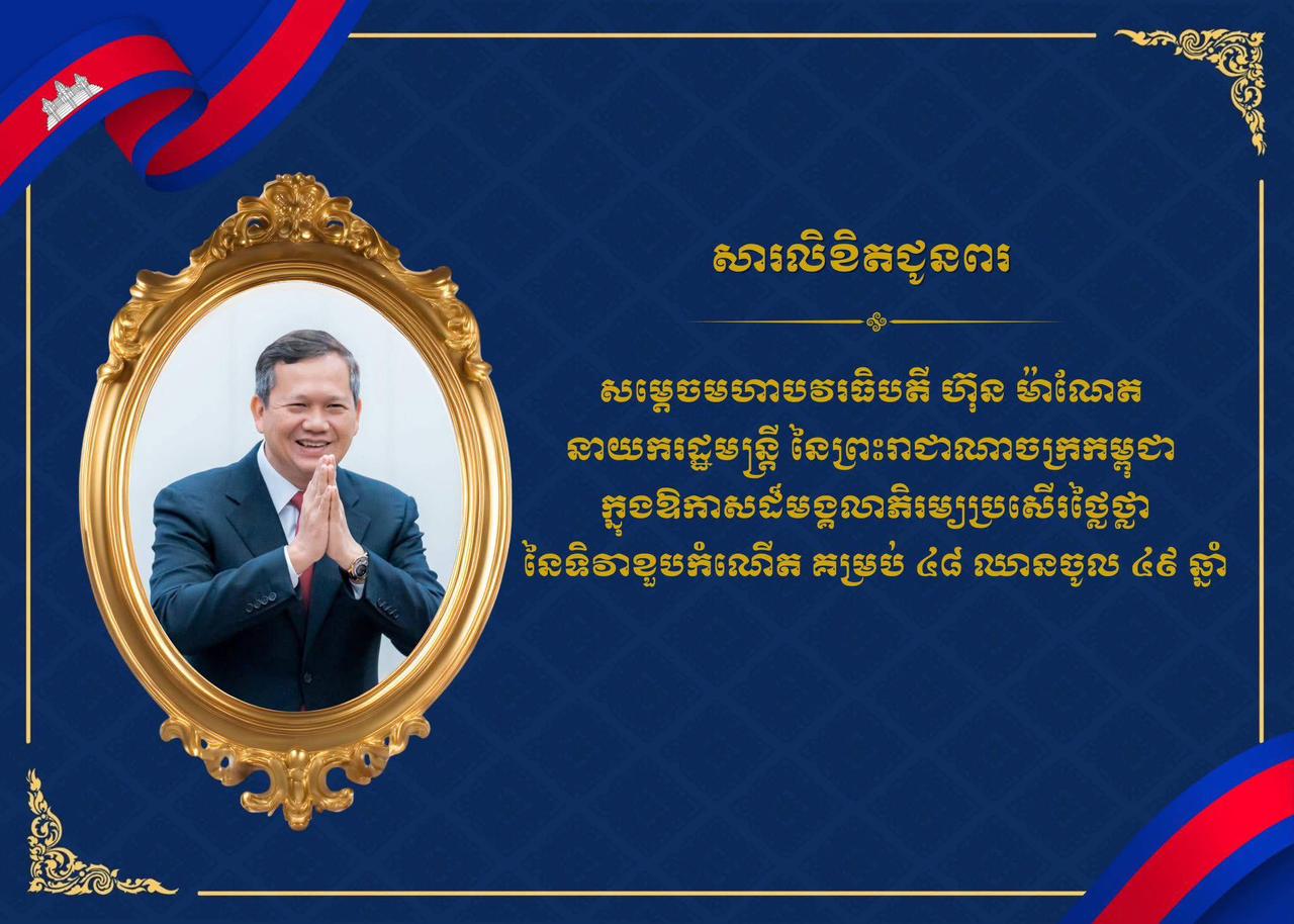 ឯកឧត្តម លូ គីមឈន់ ប្រតិភូរាជរដ្នាភិបាលកម្ពុជា ទទួលបន្ទុកជាប្រធានអគ្គនាយកកំពង់ផែស្វយ័តក្រុងព្រះសីហនុ ផ្ញើសារលិខិតជូនពរគោរពជូនសម្តេចមហាបវរធិបតី ហ៊ុន ម៉ាណែត នាយករដ្ឋមន្ត្រី នៃព្រះរាជាណាចក្រកម្ពុជា ក្នុងឱកាសចម្រើនជន្មាយុ៤៨ឆ្នាំ ឈានចូល៤៩ឆ្នាំ អានបន្ត