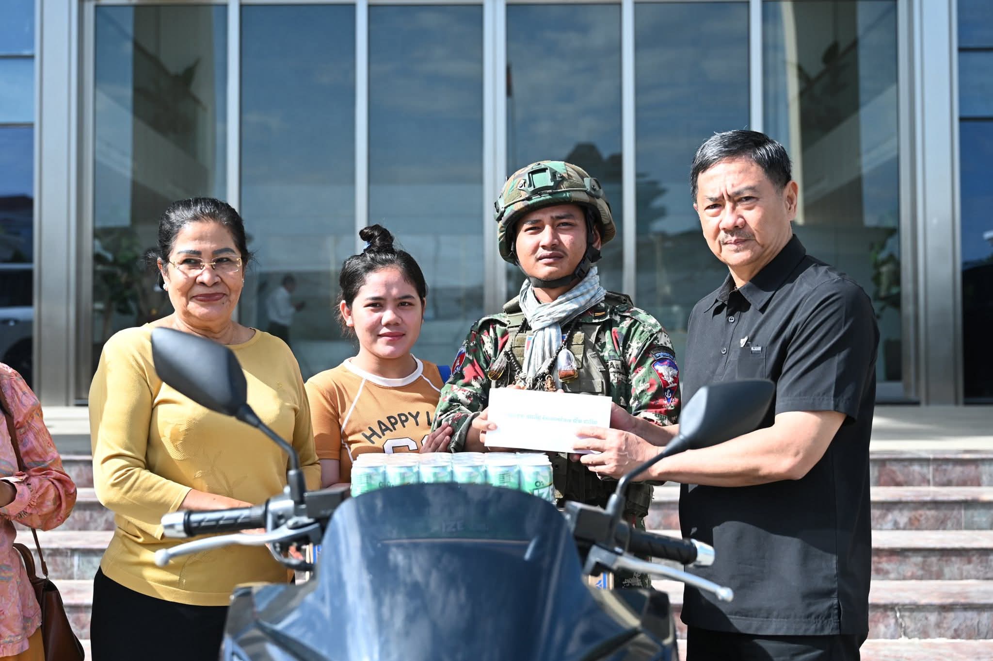 ឯកឧត្តម ឧត្តមសេនីយ៍ឯក ជួន ណារិន្ទ និងលោកជំទាវ ហ៊ុន ស៊ីណាត អញ្ជើញជួបសំណេះសំណាល និងប្រគល់ម៉ូតូ ០១គ្រឿង ជូនដល់ វីរកងទ័ព ក្រោយពីម្ចាស់ ហាងបញ្ចាំម៉ូតូ បានប្រគល់ម៉ូតូ ០១គ្រឿងនេះ ដល់វីរកងទ័ពវិញ អានបន្ត