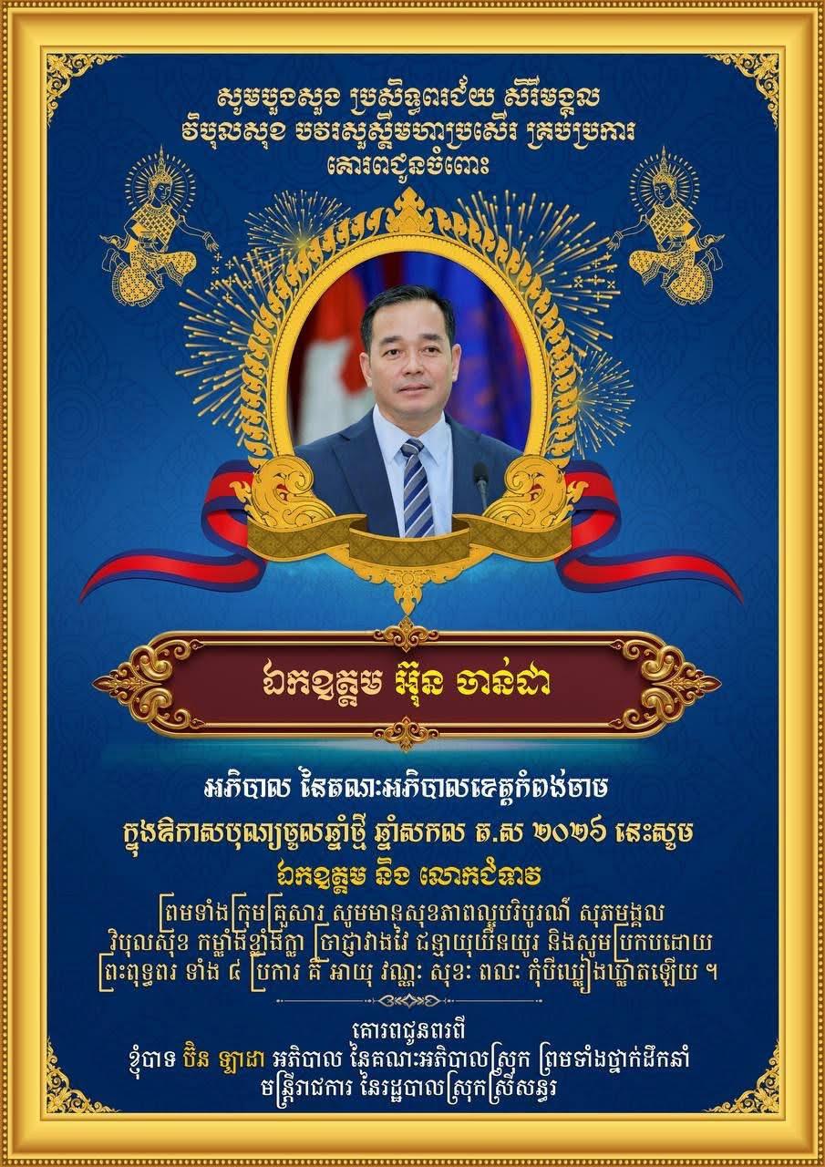 លោក ប៊ិន ឡាដា អភិបាលស្រុកស្រីសន្ធរ សូមគោរពជូនពរជ័យ ជូនចំពោះ ឯកឧត្តម អ៊ុន ចាន់ដា អភិបាលខេត្តកំពង់ចាម និងលោកជំទាវ ក្នុក្នុងឱកាសឆ្នាំថ្មី ឆ្នាំសក គ.ស. ២០២៦ អានបន្ត