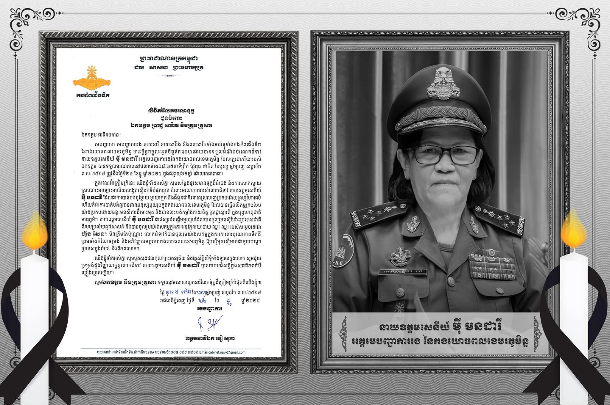 ឯកឧត្ដម ឧត្តមនាវីឯក ទៀ សុខា មេបញ្ជាការកងទ័ពជើងទឹក ផ្ញើសាររំលែកទុក្ខជូន ឯកឧត្ដម ប្រាជ្ញ សារ៉ាត ចំពោះមរណភាពលោកជំទាវ នាយឧត្ដមសេនីយ៍ ម៉ី មនដារី អានបន្ត