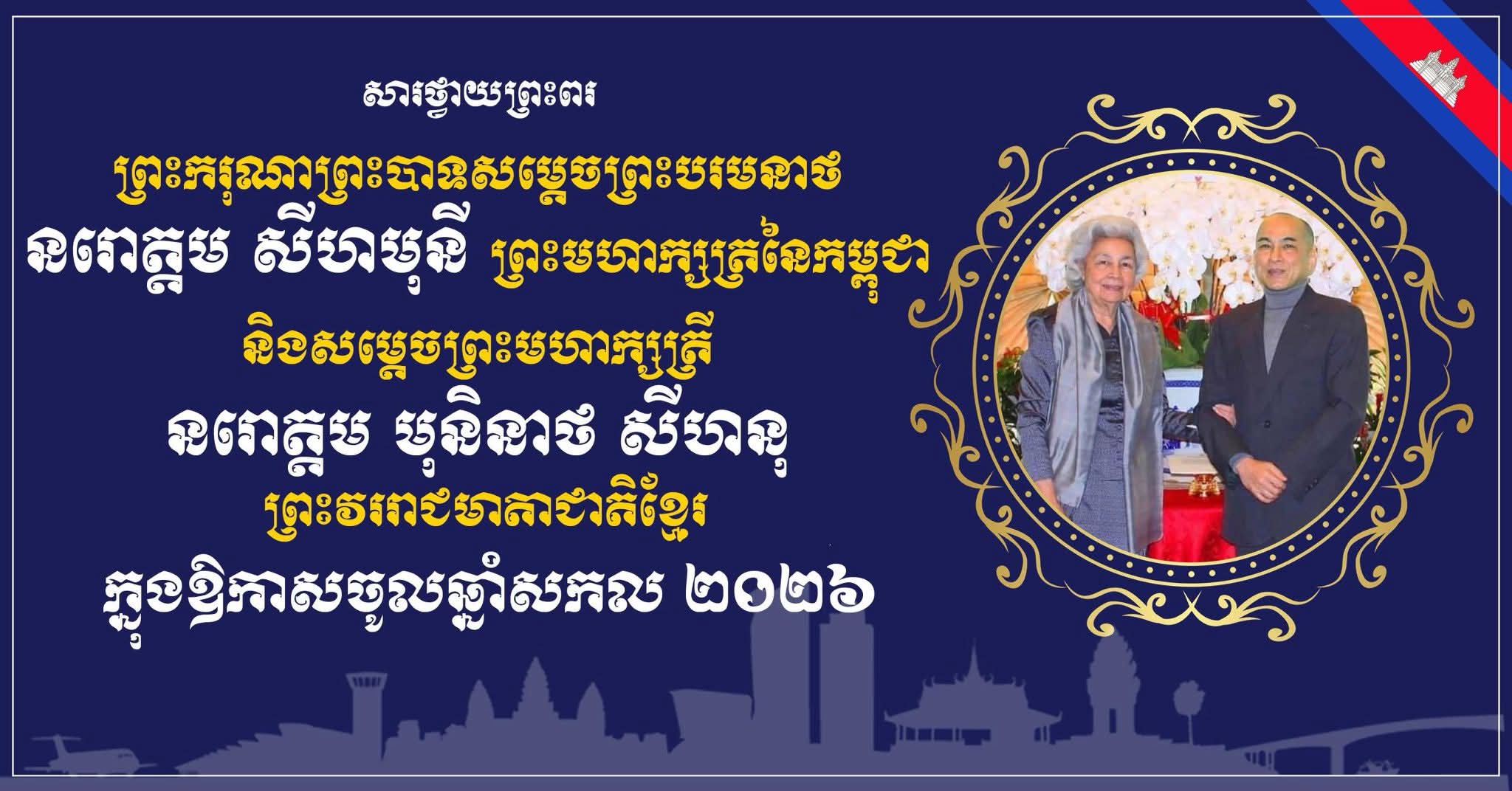 នាយឧត្តមសេនីយ៍ វង្ស ពិសេន អគ្គមេបញ្ជាការ នៃកងយោធពលខេមរភូមិន្ទ សូមព្រះបរមរាជានុញ្ញាត ក្រាបបង្គំទូលថ្វាយព្រះពរ ព្រះករុណា ព្រះបាទសម្តេចព្រះបរមនាថ នរោត្តម សីហមុនី និងសម្ដេចព្រះមហាក្សត្រី នរោត្តម មុនិនាថ សីហនុ ក្នុងឱកាសចូលឆ្នាំថ្មី ឆ្នាំសកល គ.ស.២០២៦ អានបន្ត