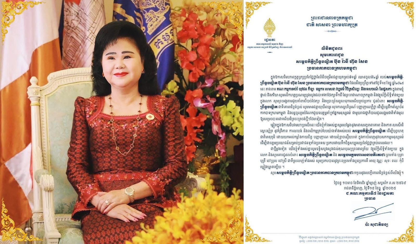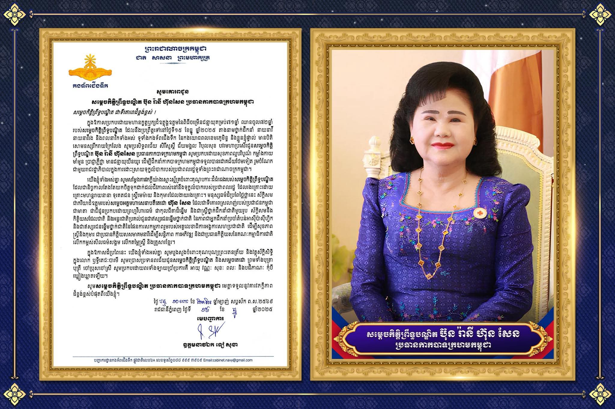 ឯកឧត្តម ប៉ា សុជាតិវង្ស ប្រធានគណៈកម្មការទី៧ នៃរដ្ឋសភា ផ្ញេីលិខិតជូនពរ សូមគោរពជូនសម្តេចកិត្តិព្រឹទ្ធបណ្ឌិត ប៊ុន រ៉ានី ហ៊ុន សែន ក្នុងឱកាសដ៏មហានក្ខត្តឫក្សប្រពៃថ្លៃថ្លា នៃពិធីចម្រើនជន្មាយុ គម្រប់ ៧១ឆ្នាំ ឈានចូល ៧២ឆ្នាំ អានបន្ត