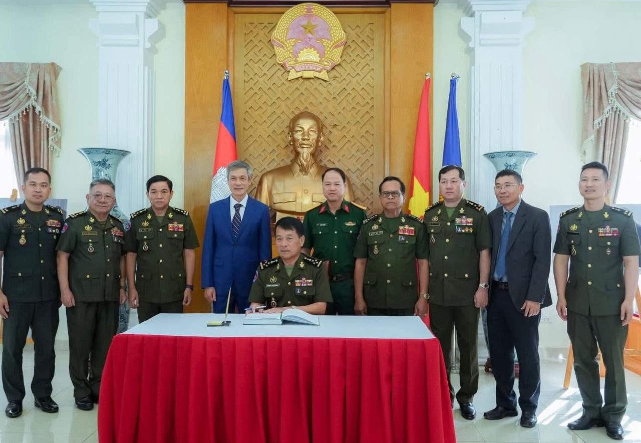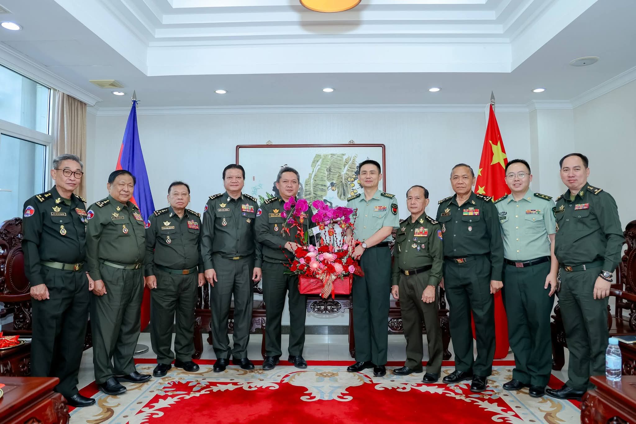 ឯកឧត្ដម ឧត្តមសេនីយ៍ឯក ហួត ឈាងអន នាយរងសេនាធិការចម្រុះ នាយកទីចាត់ការភស្តុភារ អគ្គបញ្ជាការ បានដឹកនាំប្រតិភូជូនពរ លោកវរសេនីយ៍ឯកពិសេស ជិន វន់ តឹម ប្រធានការិយាល័យ អនុព័ន្ធយោធាសាធារណរដ្ឋ សង្គមនិយមវៀតណាម ប្រចាំកម្ពុជា ក្នុងឱកាស ត្រៀមស្វាគមន៍ឆ្នាំថ្មី ប្រពៃណីវៀតណាម អានបន្ត
